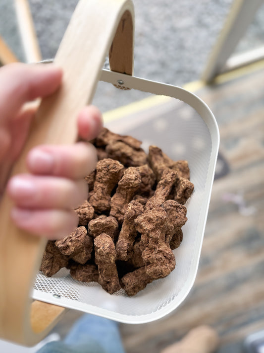 We know that our dog treats look super tasty, and all kinds of yummy…but only if you’re a dog! Please note that our products are NOT suitable for human consumption.